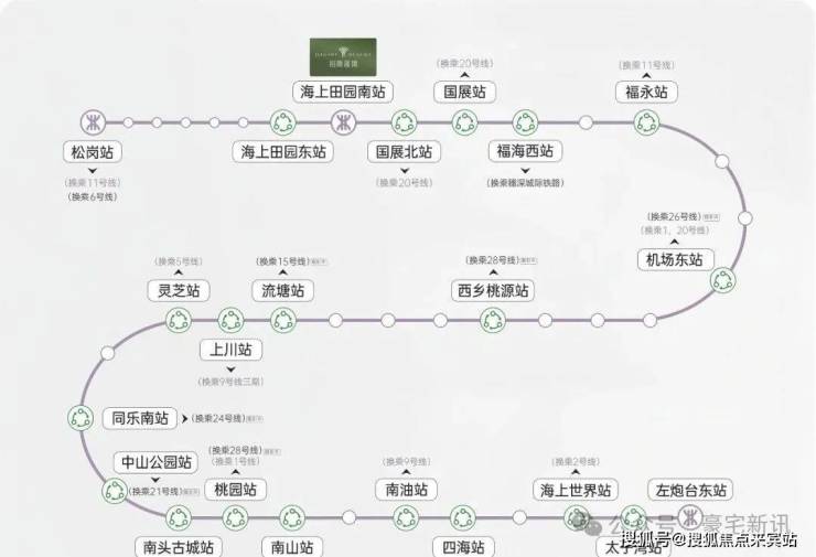 从项目出发,直线距离12号线海上田园南站A出口约100米,1站到国展北可换乘20号线,5站到福永可换乘11号地铁线。