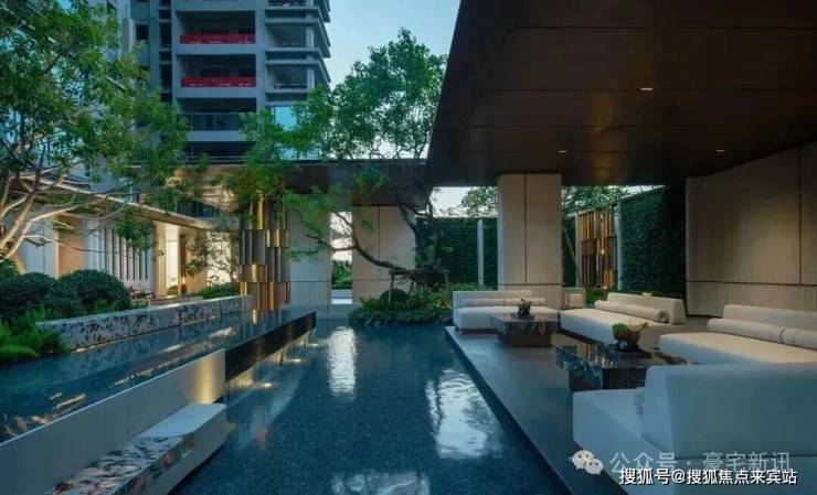 园林设计上,森系度假美学景观,公区质感跃级,优选石材、铝板、铝格栅等,入户大堂奢华感拉满。