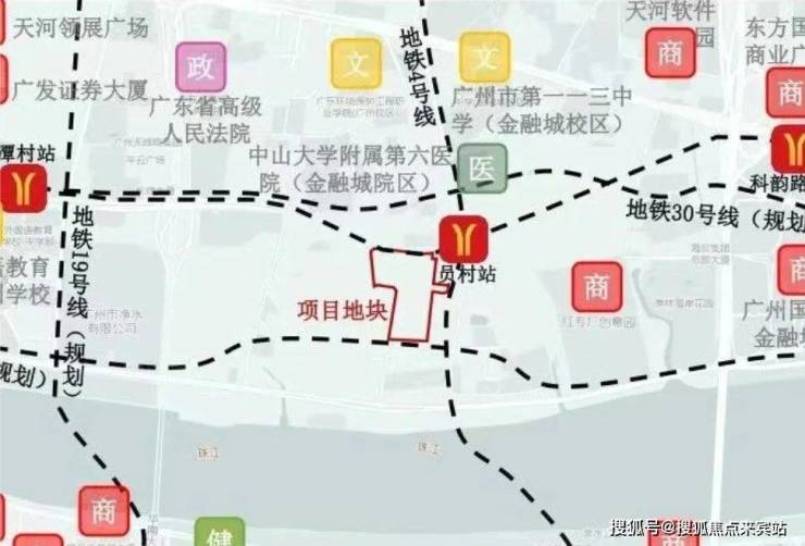 尤为值得一提的是,这是天河比较难得的靠近地铁站的盘,地块东北侧距离地铁5号线与11号线交汇的员村站仅150m,5号线+11号线可以连通广州最核心的几个商务圈---珠城、琶洲、天河北、白鹅潭等等,通达性很强。