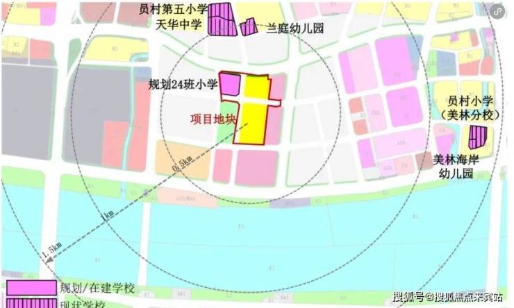 地块1.5公里范围内有员村第五小学、天华中学、兰庭幼儿园、员村小学(美林分校)、美林海岸幼儿园等。