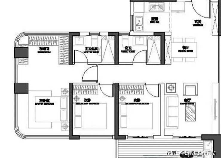 90平三房两卫,主卧带衣帽间,竖厅,客厅3.4米面宽,大阳台。整体来说户型还是相当不错的。每个房间都不小