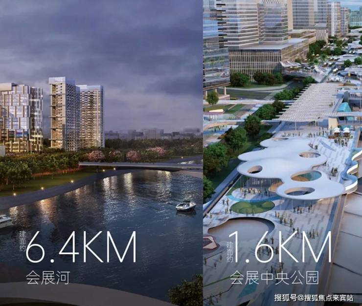 集休闲、家庭、娱乐、美食于一体,为繁忙的都市生活提供舒适的休闲体验;以超300万㎡总体量,集合约160万㎡国际会展中心及约154万㎡包括国际体验式商业中心、星级酒店群、高端公寓群、会展商务基地、会展公园、会展河等复合功能业态会展综合配套。