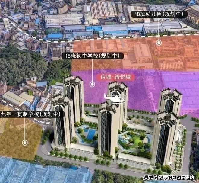 信城缙悦城,总共分3期开发建设,总占地面积约22万㎡,总建筑面积约55万㎡,容积率3.65,绿化率40%,待整个项目建成后,将会有26栋住宅,总高都是30层的,另外还有朱古石中学在建,北面的大片产业园区都是政府利益统筹用地,后期也是规划建设住宅。