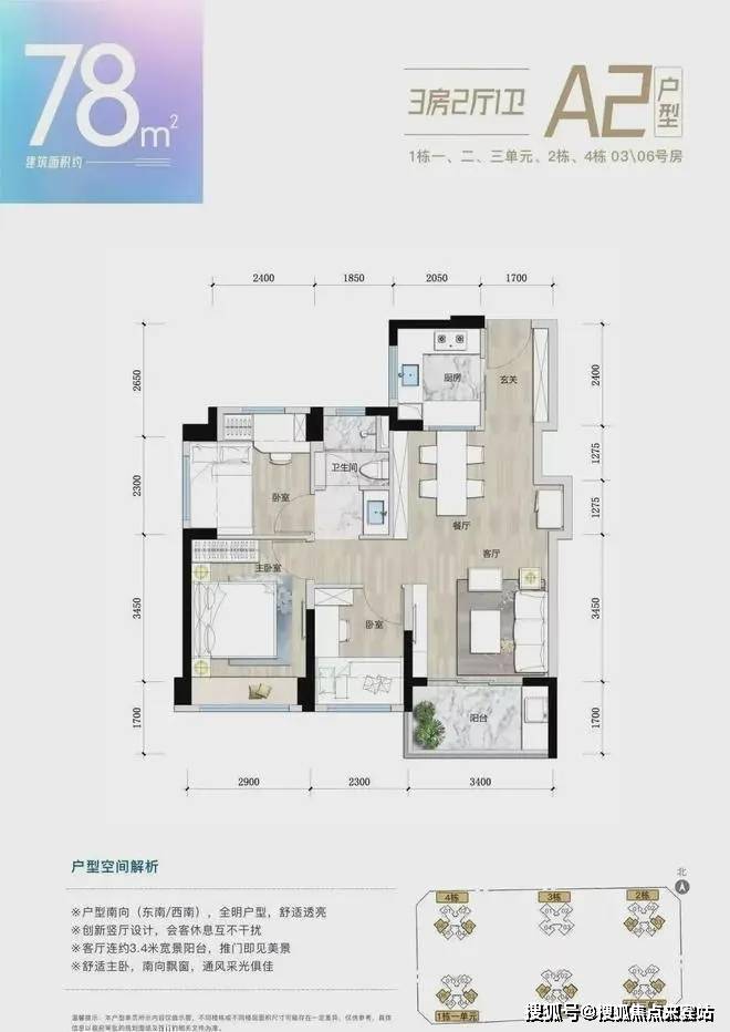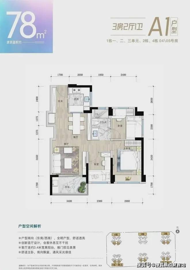 实用率为80%,极致收纳空间,灵动情感互动窗设计,3.4米宽景阳台,特设VIP专属冰箱位,wifi中心,匠心构建舒适暖心的家。