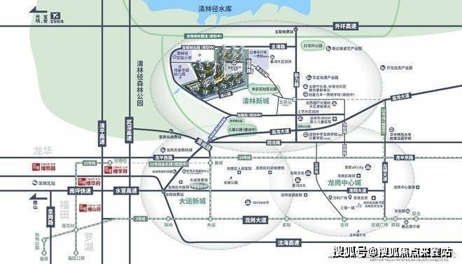 清林新城,作为龙岗区重要“支点”联动“产学研”一体发展,以高端装备制造、生物电子、纳米技术等新兴产业为发展方向,构建“一核、二带、三板块、多节点”的城市总体空间布局,打造绿色智造新城;