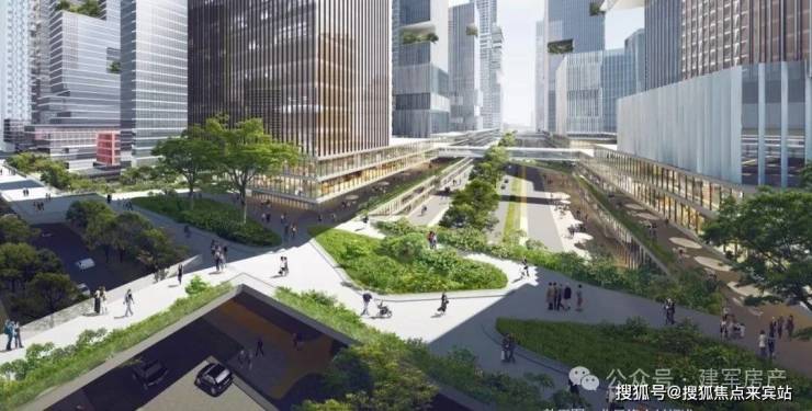 立体交通——未来片区多层次、多维度的立体绿色出行体系。双地铁上盖,市政规划的空中连廊系统,“0”距离接驳全城。