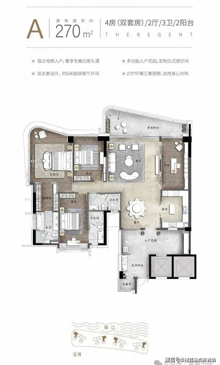 户型面积:140㎡-480㎡四房-六房双主套