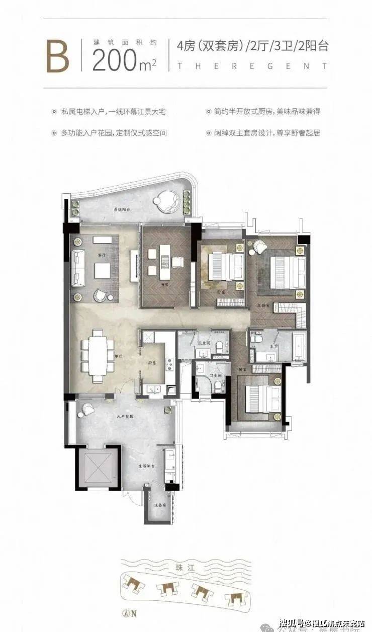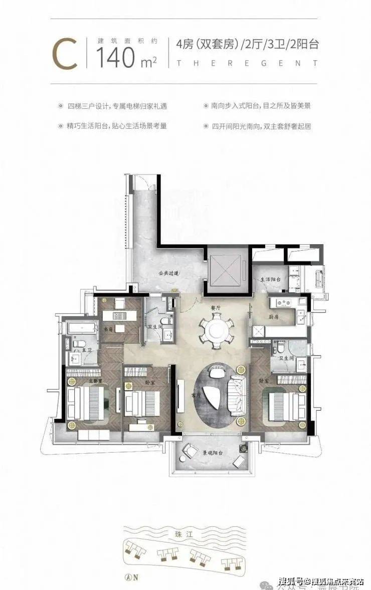 南天名苑项目位于洛溪岛的岛尖,是香港霍英东集团在广州城市中轴打造大型低密度岛尖江景豪宅,业主在室内可以近览三江汇聚的壮美江景,远眺CBD的繁华景致。