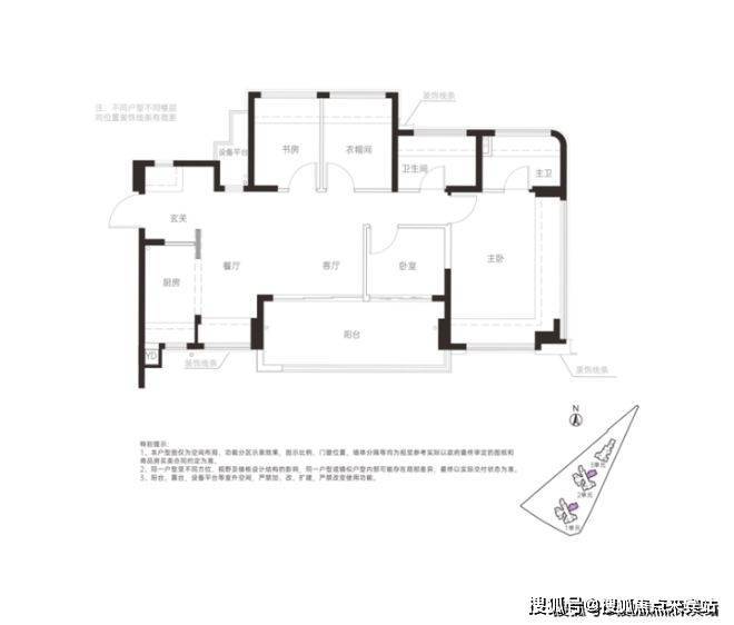 横厅设计,入户玄关处可以做收纳,全屋多飘窗,主卧套房设计,“阳台”和“书房”处实际可以做房间。