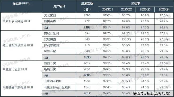 2.保租房REITs:2023年保租房REITs可供分配金额目标完成率均超100%,底层资产项目出租率均处高位