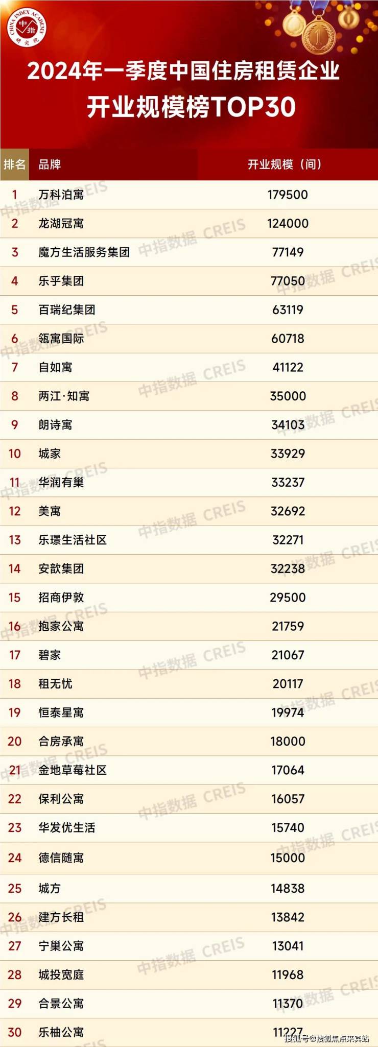 榜单说明:(1)统计时间:截至2024年3月31日。(2)统计类别:集中式长租公寓(含保租房,不含公租房)。(3)数据来源:中指数据CREIS·租赁版(点击查看)、企业提报、公开资料。(4)特别声明:本报告仅供参考,课题组不对使用报告及其内容所引发的任何直接或间接损失承担责任。