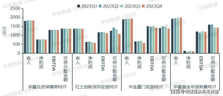 从核心财务指标来看,保租房公募REITs运营业绩总体呈现稳健态势。据最新披露数据显示,2023年四季度,华夏北京保障房REIT实现收入1829万元,环比下降0.63%,可供分配金额1379万元,环比增长0.30%;红土创新深圳安居REIT实现收入1363万元,环比下降0.79%,可供分配金额1082万元,环比下降18.83%;中金厦门安居REIT实现收入1944万元,环比增长0.85%,可供分配金额1377万元,环比下降6.03%;华夏基金华润有巢REIT实现收入1989万元,环比增长0.48%,可供分配金额1434万元,环比微降0.09%。除红土创新深圳安居REIT可供分配金额环比降幅较大之外,保租房REITs总体运营业绩表现稳健。