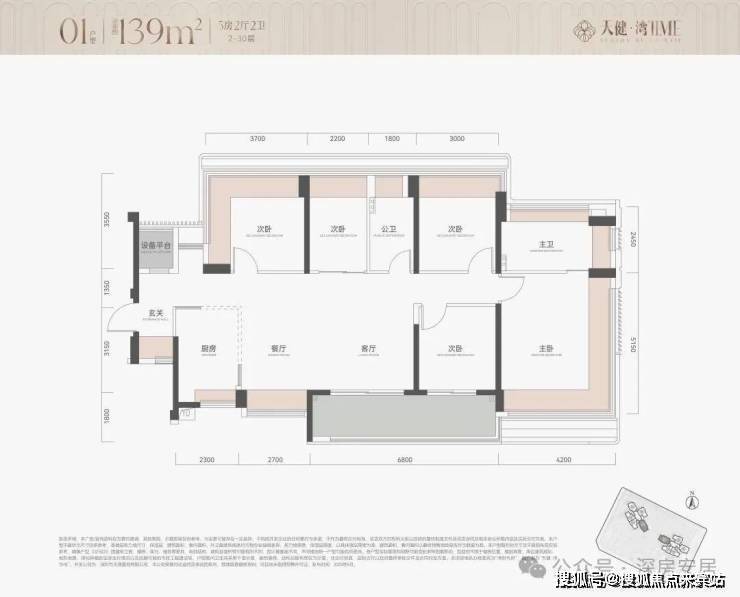 139㎡5房2卫,竖厅户型,朝南看海,户型结构和115接近,多了一间朝南卧室,主卫做了双面凸窗;
