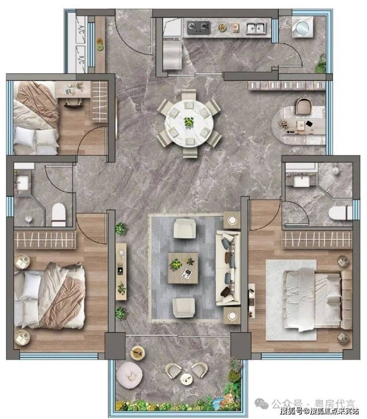 部分户型为“3+n”房设计,实用率高达117%,空间灵活多变。