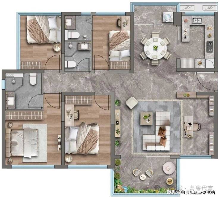 第四代住宅:户户带空中庭院 / 大阳台,赠送率高,使用率约 100%+