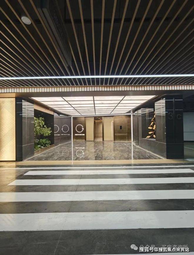 进入地库负一层,顶面增加格栅吊顶与线性灯,局部采用大面灯箱,扩大了车道顶面范围,让业主的归家之路每一帧都是极致浪漫。