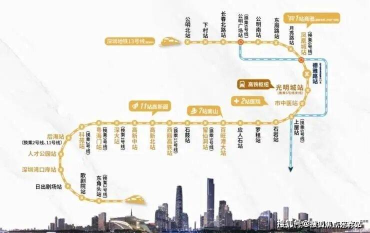 交通配套:观玥名邸家门口200米就是13号地铁线“德雅路站”,以前的同观路站已经改名;最高时速100公里,预计2025年开通运营,1站可到光明城站,换乘6号线/光明城高铁站,3站可到石岩,7站到西丽,8站到留仙洞总部基地,11站到南山高新园。