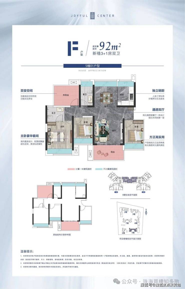 本宣传资料仅为项目信息公示用途,不构成《商品房买卖合同》的要约或承诺。宣传内容中涉及的项目规划、周边配套、政府规划、商业资源、教育资源、交通配套、户型面积等相关信息,最终均以政府相关部门审批文件及项目实际交付情况为准;