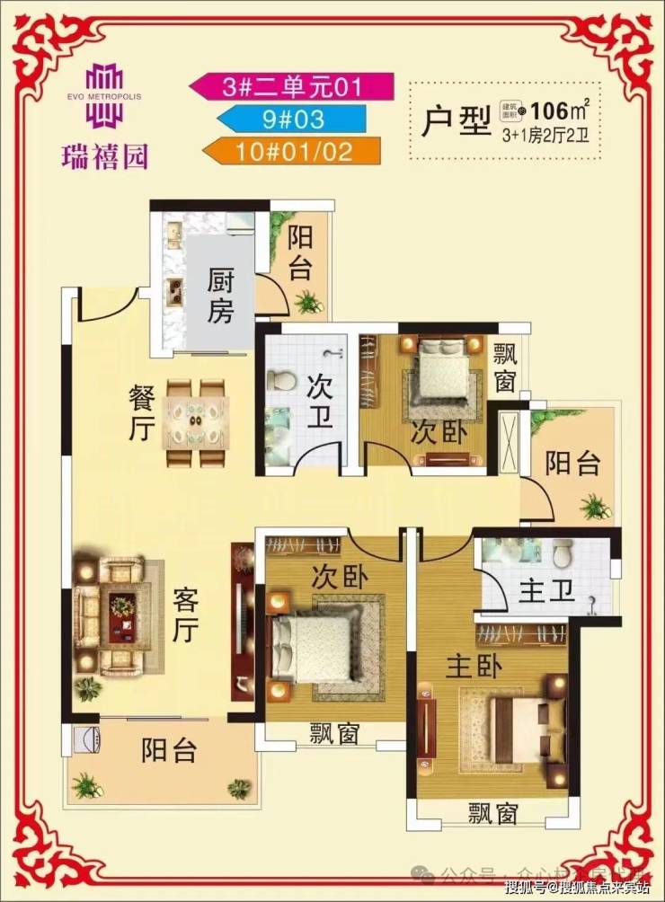 【在售户型】82-133平两房到五房,两梯四户格局,