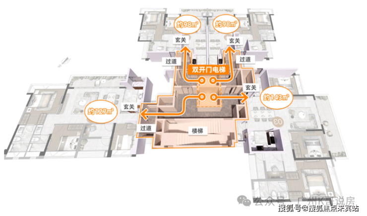 类专梯入户 | 两梯四户梯户比+双开门电梯,类专梯专户的豪宅高标