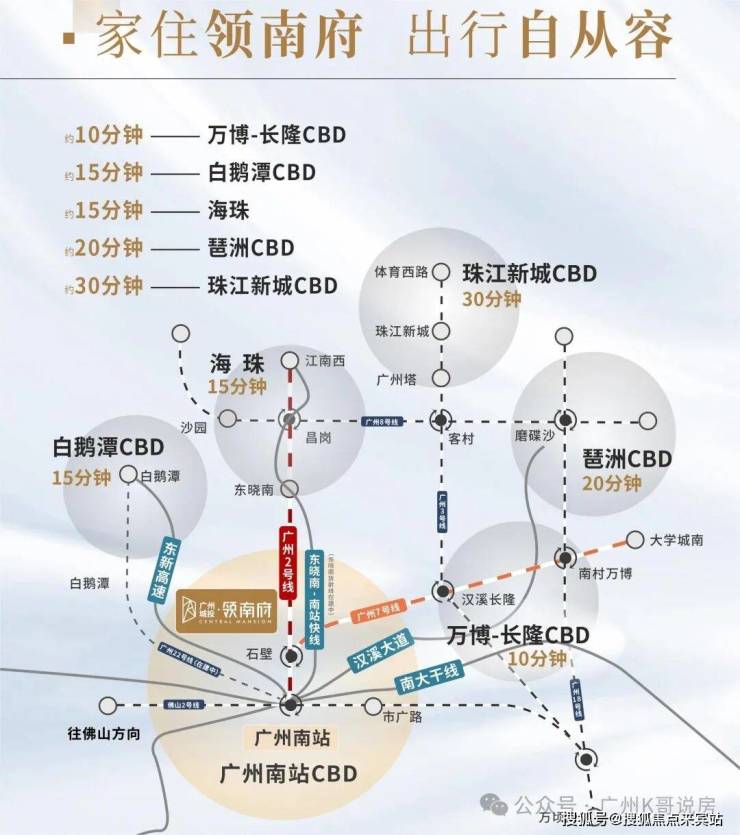 通过2号线、22号线、广佛环线、海珠湾隧道等多维交通,珠金琶、白鹅潭、海珠,全都能直达。