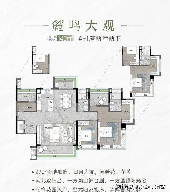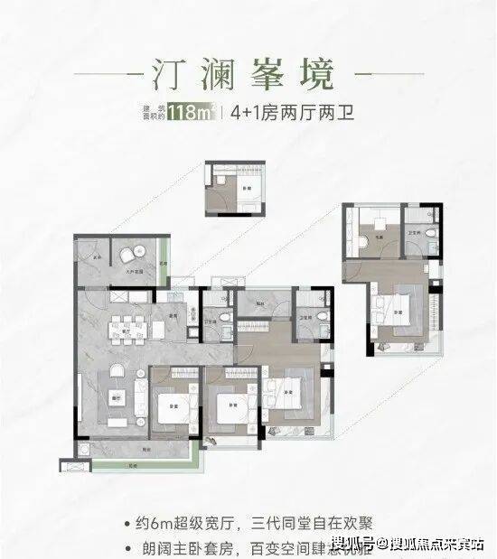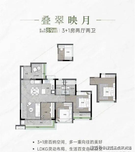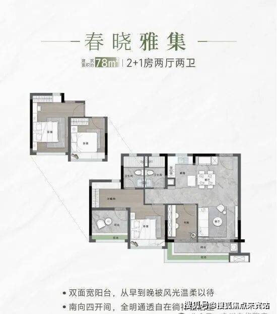 高实用率户型:最小户型78㎡起,主打刚需户型设计灵活,LDKG一体化客餐厅、双面宽阳台等设计,实用率超100%,赠送面积多。