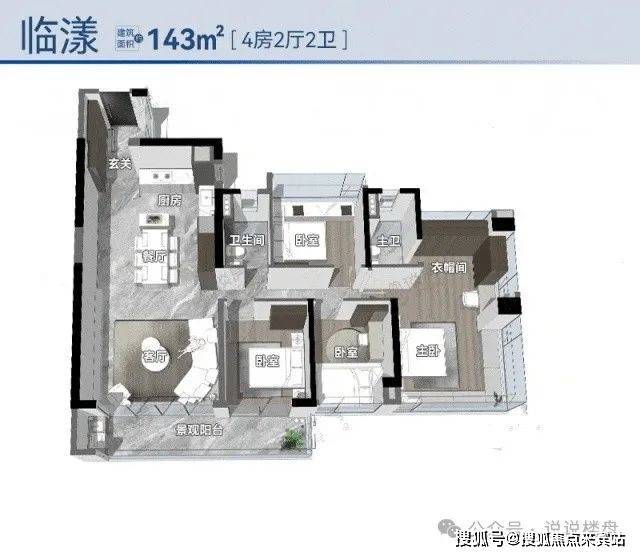 建面约143㎡户型,LDKG一体空间,组成约57㎡的超聚厅,进可观赏江景,退能链接亲情。家庭聚餐、生日宴、玩游戏...时间在流淌,家人间的感情在升温。