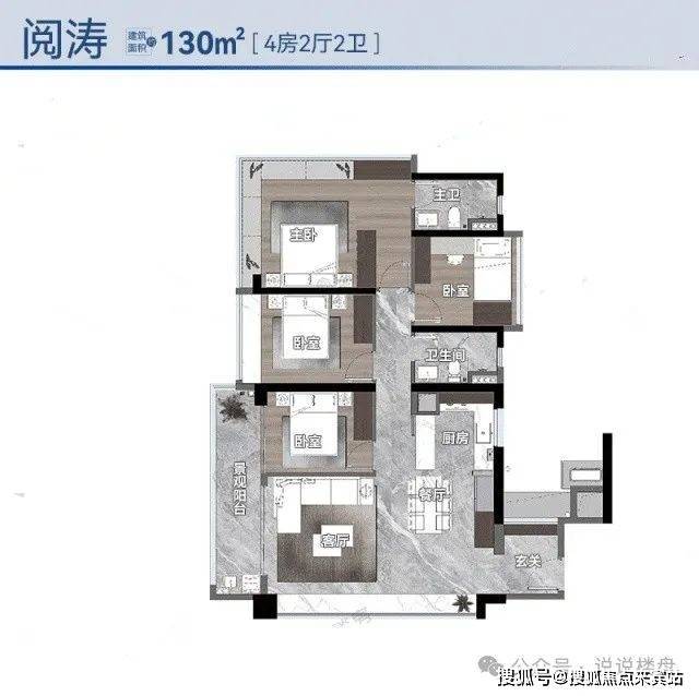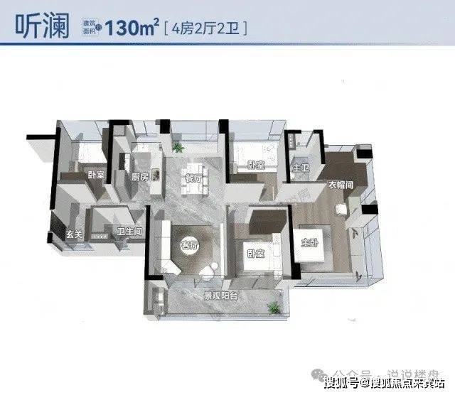 建面约130㎡户型,南向瞰江面超16米,尽览江天一色的美景,产品力超越同级产品。主卧达到约25㎡,尺度接近市面上145㎡户型。