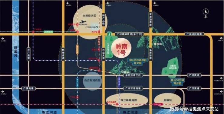 岭南1号位于六片山,在广州新中轴的北端,既享有城市的繁华,又根植于美好的自然生态。距离地铁十四号线东平站1.6公里,靠近北二环高速公路、新广从公路、北太路、106国道等高快速路和主干道,距离白云新城仅约5公里,距离天河仅约10公里,恰好契合了当代精英阶层"既要便捷又要静谧"的生活追求。