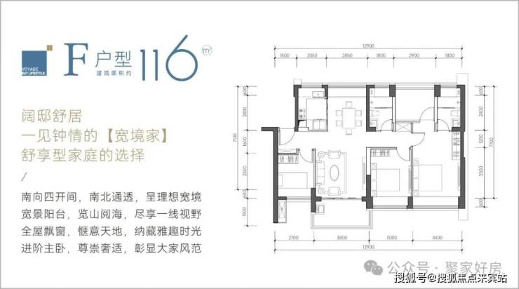 116㎡的4房2厅2卫,F户型,设计的是竖厅南北通透格局,餐客厅一体化设计,客厅3.8米开间,四开间朝南,4个卧室分别做到了主卧18.02㎡/次卧12.3㎡/次卧8.7㎡/次卧8.37㎡(包含墙体飘窗),都不用搭配飘窗做床,L型厨房,卫生间干湿分离,得房率约:88%(包含赠送),阳台主朝西南或东南向。