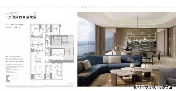 【户型规划】由4栋51至63层3.6-3.9米层高的纯居住奢装交付地标、两栋4.5米层高的小高层,35栋独栋,全景幕墙、宽景阳台。