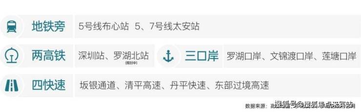 项目距离地铁5号线布心站约250m、距离地铁5、7号线太安站约500米。周边近享2高铁、3口岸、4快速,通达全城,三大口岸年通关量5876万人次,地铁旁物业坐享深港两地海量商机人流。