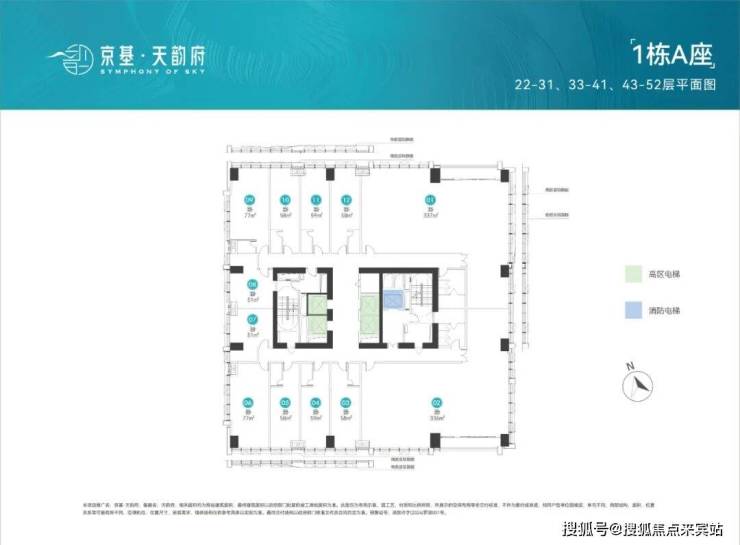🉐️低区7梯22户(6-19层);高区5梯12户(22-52层)