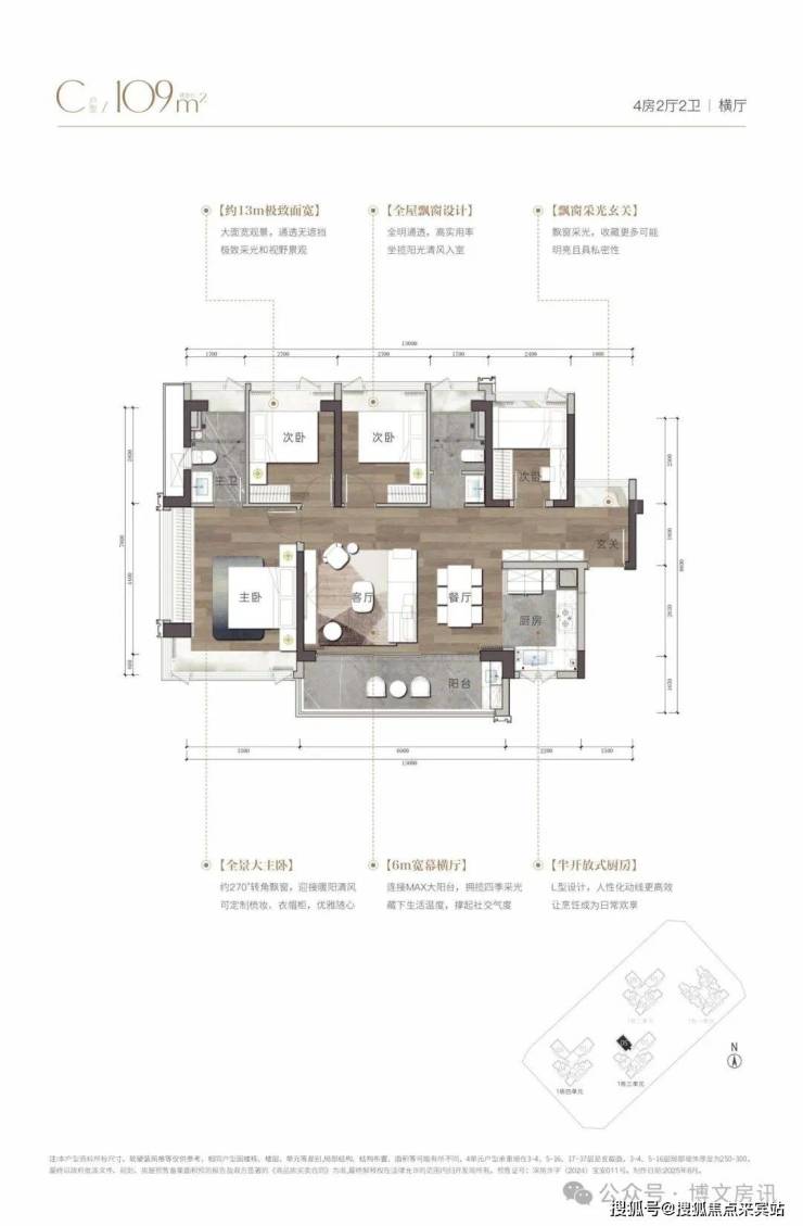 【产品面积】建面约108㎡/109㎡/138㎡~143m²海幕纯四房