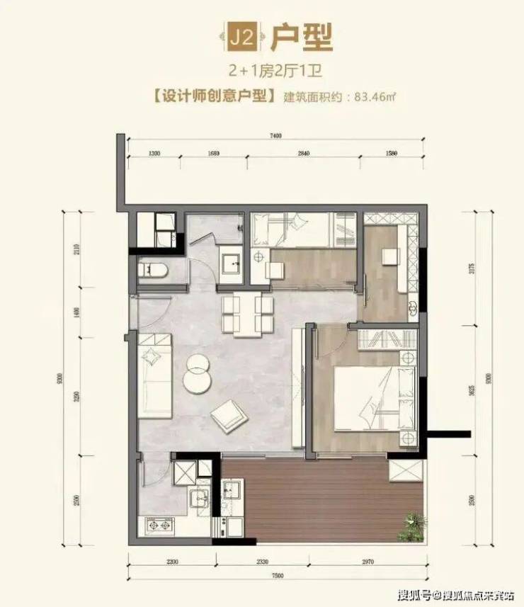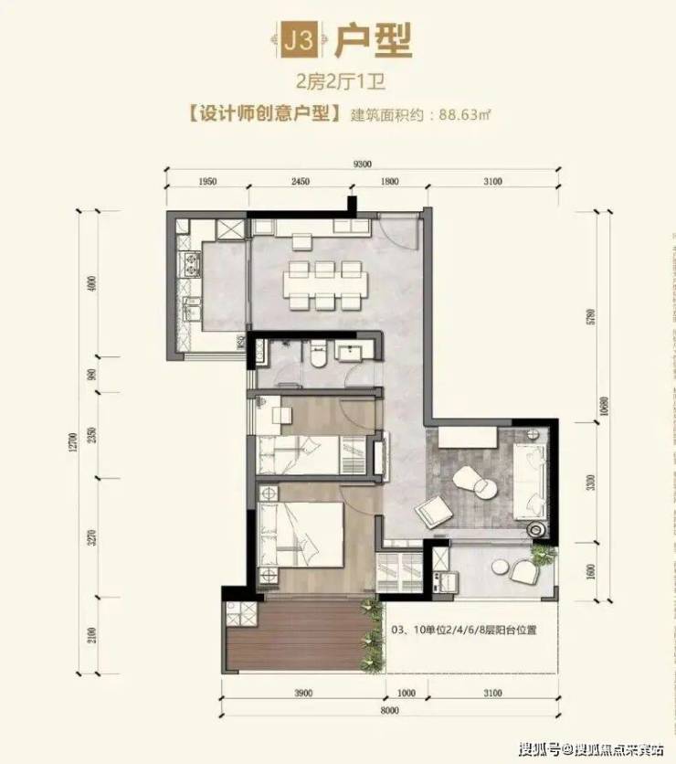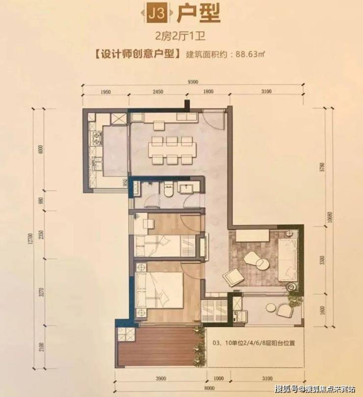 (朝南,双阳台,厅和卧室出阳台,采光良好)