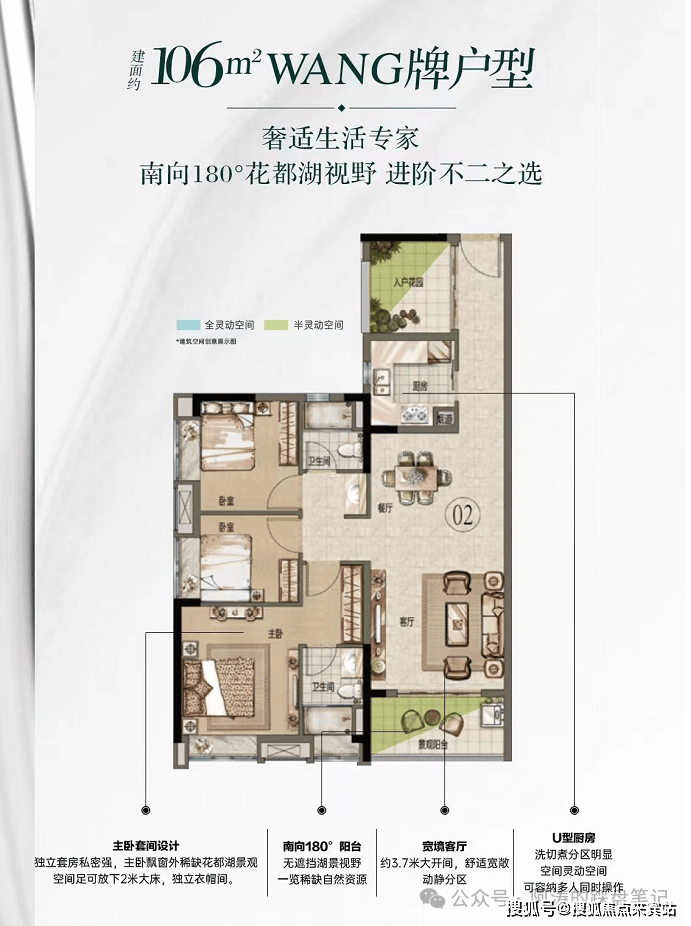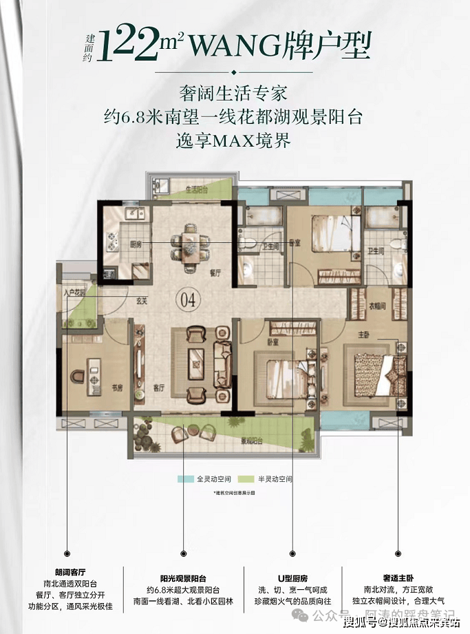 •一线南望花都湖:出门50米即4300亩花都湖湿地公园,湿地率70.3%,6.68公里环湖绿岛,闲暇出行、运动、休闲,365天鲜氧环绕。