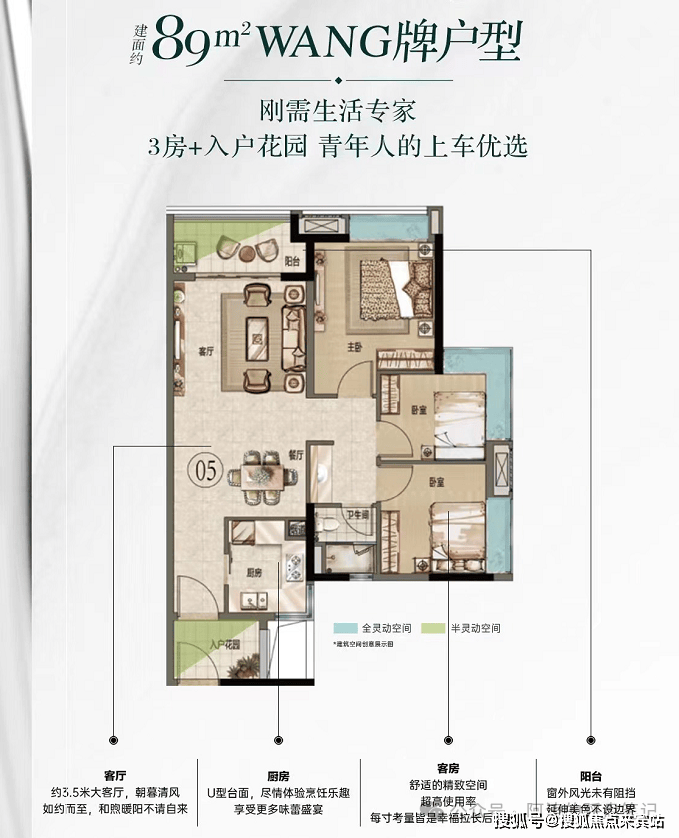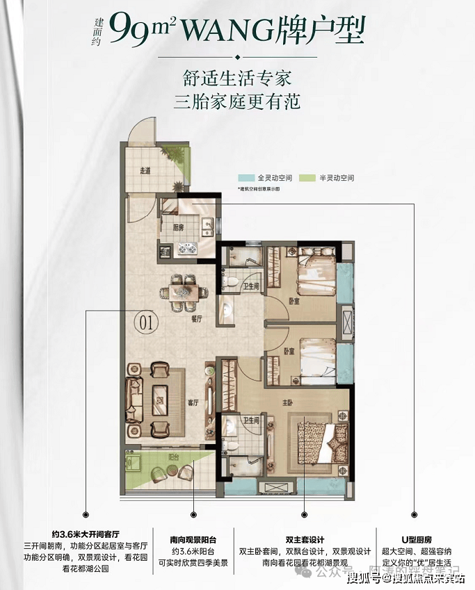 主力面积:89-99-114-122 ㎡三四房(层高 3 米,绿色智慧家高标智能精装)
