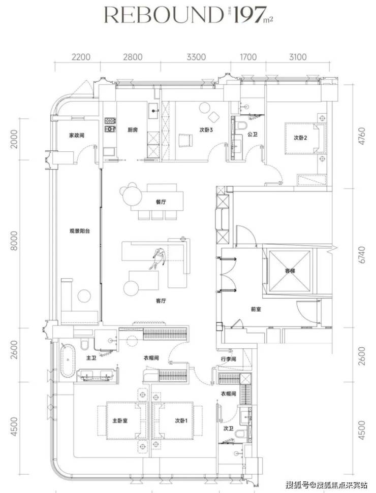 项目占地14969.93㎡,是过去饼干厂旧改,住宅没有7090限制,面积段为188-246㎡精装大平层。由4栋住宅组成(3栋商品房+1栋回迁房),商品房总计261户,户均218㎡,主打188-247㎡ T2、T3高端改善户型。