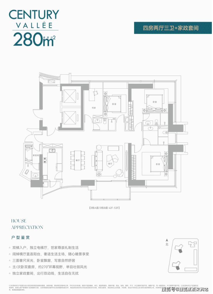 前两次都是公寓,现在住宅首发!还是定位相当高端的纯大平层而且还是无敌景观视野,8梯3户,233㎡/280㎡配备两个独立电梯,386㎡双梯设计,实在任性!