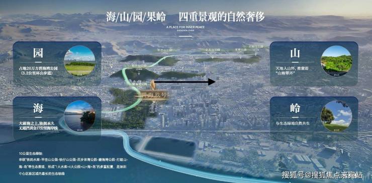 一线无遮挡公园海景,约20万m²碧海湾公园、约67万m²鲜氧果岭,自然度假风貌。