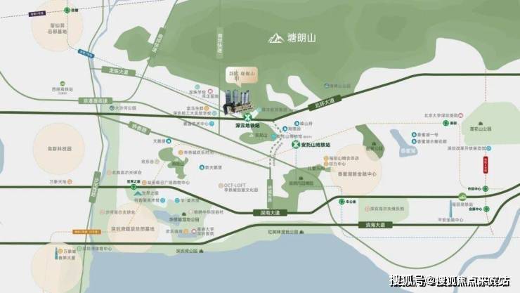 地面交通方面,京港澳高速、北环大道、南坪快速等三大干道构建"两横一纵"主轴交通网,自驾出行便捷。项目还毗邻规划中的西丽综合交通枢纽,该枢纽作为深圳市"五主五辅"铁路客运主枢纽之一,汇集4条国家铁路、2条城际铁路和4条地铁线路,规模超过深圳北站,建成后将成为深圳最大的高铁站和轨道交通换乘站,对区域交通能级提升具有重大意义。