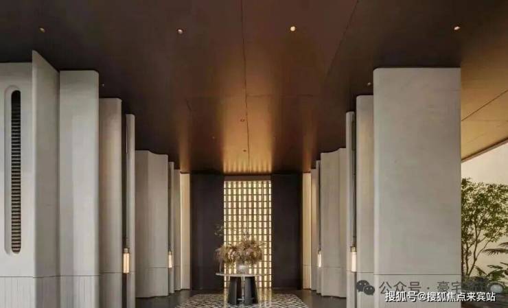 园林设计上,森系度假美学景观,公区质感跃级,优选石材、铝板、铝格栅等,入户大堂奢华感拉满。