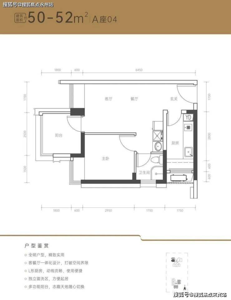 50-52㎡两房户型:全明户型,精致实用;客餐厅一体化设计,打破空间界限;L形厨房,动线流畅,使用便捷;独立盥洗区,方便起居;多功能阳台,志趣天地随心切换。