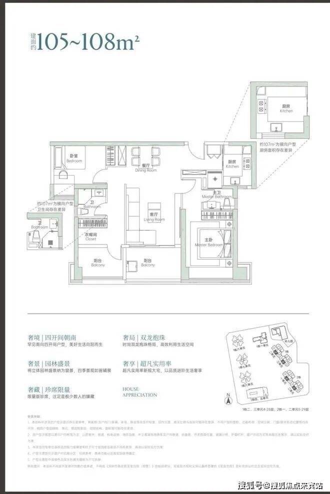 :105㎡起纯大户型,无刚需小户型混杂,精准锁定高净值人群,圈层高端纯粹。