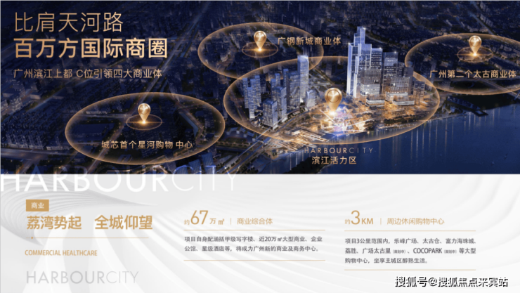 8大业态城市综合体,规划有大型商业,企业总部,星级酒店,滨江公园,文化艺术中心,教育医疗配套,高端居住及TOD立体交通于一体,广州唯一最全配套大体量的综合体。