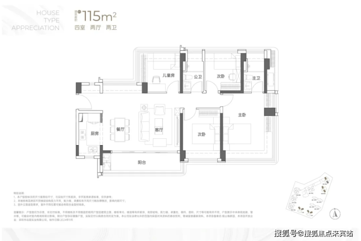 竖庭格局,西南向,基本居住功能与建面约108-110㎡4房2卫一致,但格局不一样,从目前公布的户型图上看,主要是主卧空间有了更大的提升,比如可以放更大一点的衣柜。但从位置上看,它所在的楼栋更靠近主干道,会有噪音影响。