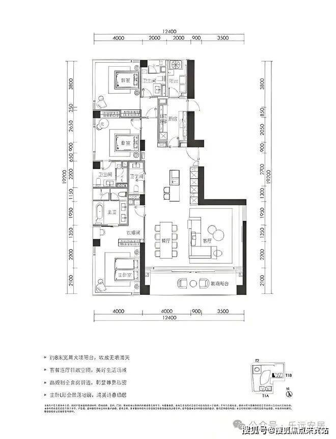 280㎡三房两厅四卫:位于1栋三、四单元24-32层,为05、08户型。拥有超8米超宽幕开间,厅出阳台可直面海景。采用三套房设计,主卧配备L形全景落地窗,占据270°最佳观海位。
