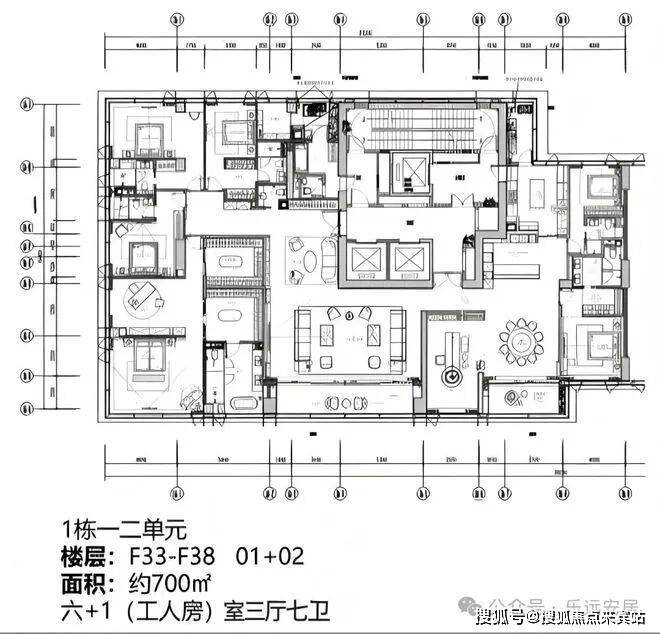 500-700㎡超大户型:700㎡户型位于1栋一、二单元高区33-38层,由01+02户型组成。户型宽敞奢华,可尽享海景与城市景观,为高端客户提供极致居住体验。