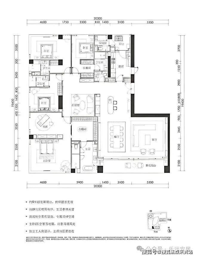 468㎡五房三厅六卫:位于1栋一、二单元高区33-38层,一层一户,仅6席。五房四套房设计,主卧L形全景落地窗,270°最佳观海位,南向超大三厅一体,动静分区布局有序。