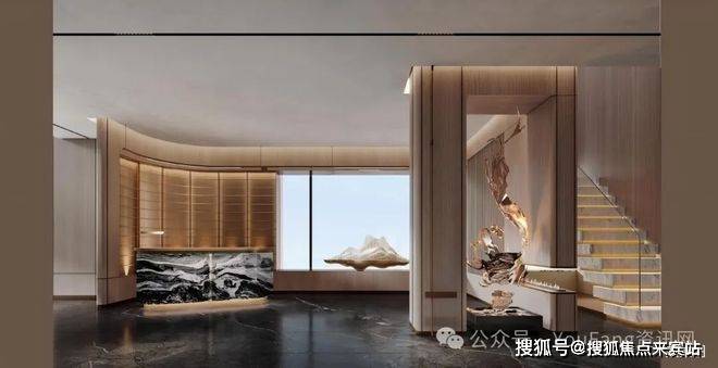 归家礼序:三重尊奢归家,主入口前设置迎宾广场,台地式建筑拾级而上,入社区后景致相依,酒店式的归家奢华大堂,营造归家尊崇仪式感。